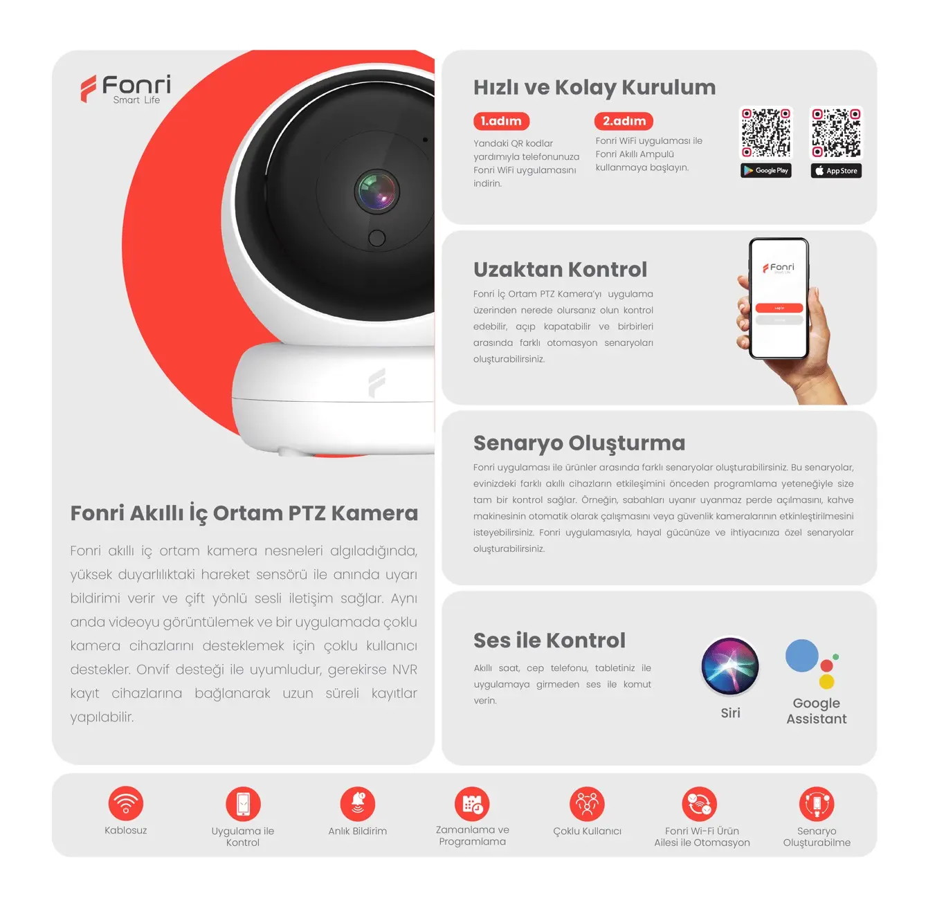 Fonri Akıllı Bebek Ev ve Güvenlik Kamerası – Wifi – Çift Yönlü Konuşma – 360 Derece Görüş